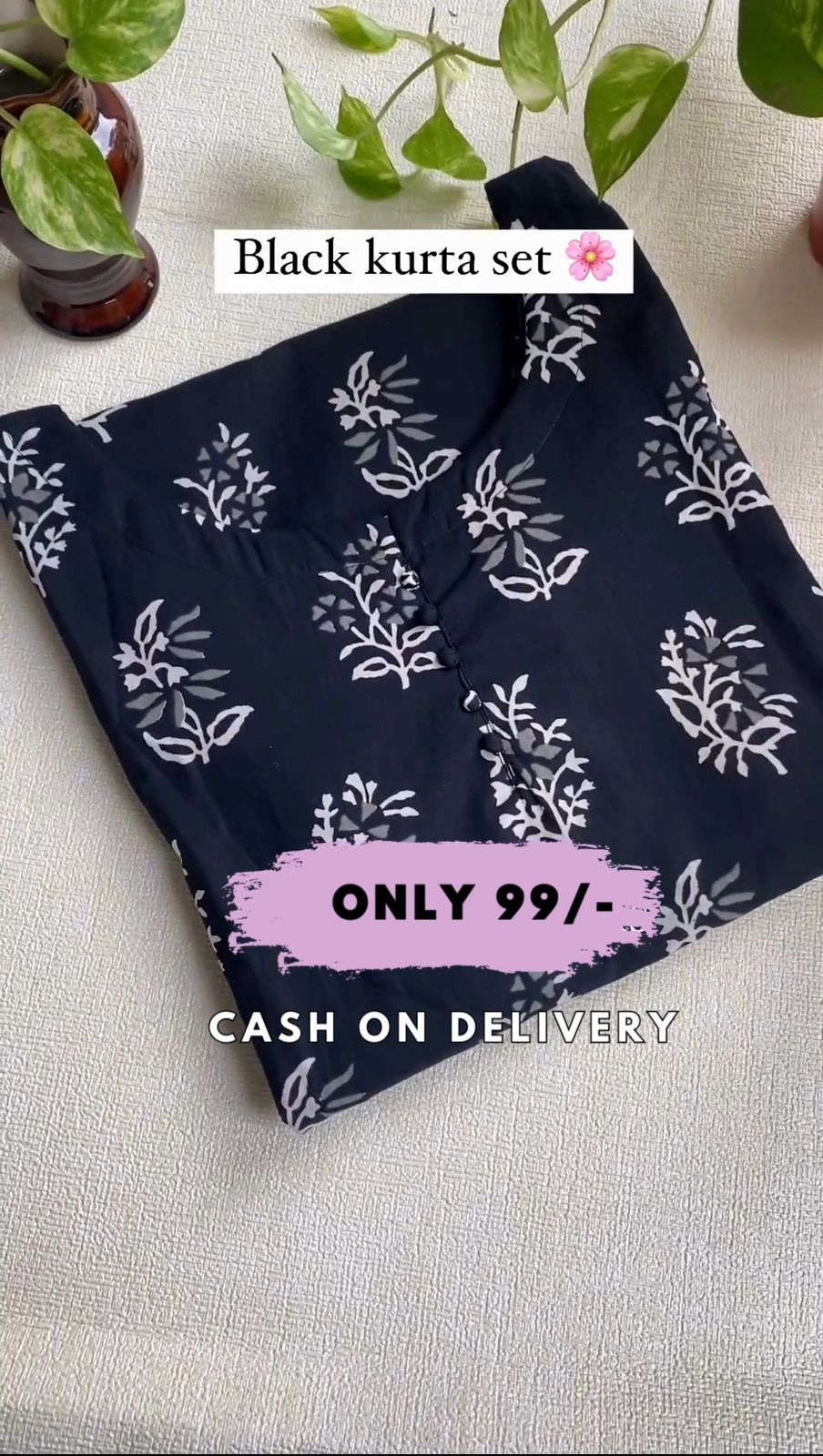 Black Color Printed Cotton Kurta Set